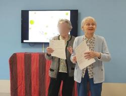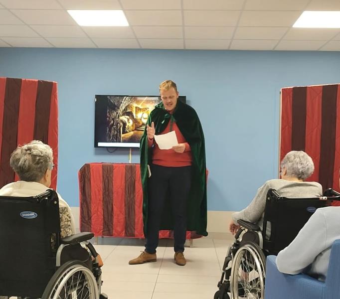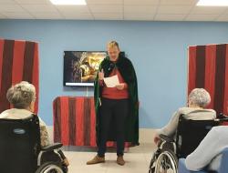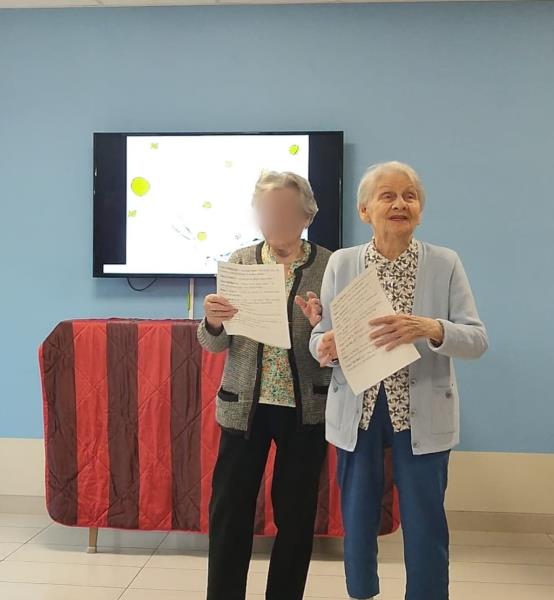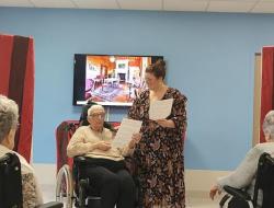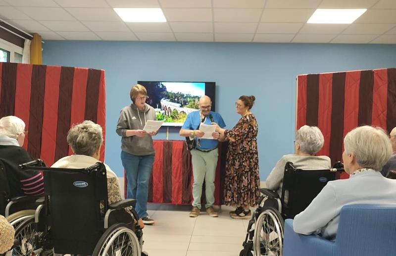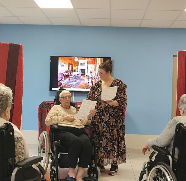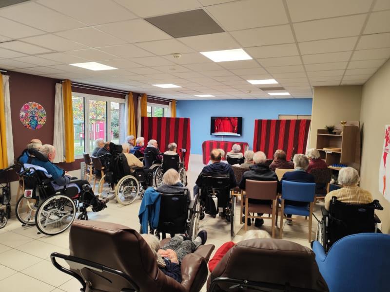 Ce vendredi, la salle d’animation s’est transformée en véritable théâtre ! Résidents et membres du personnel ont partagé la scène pour offrir un spectacle composé de petites scénettes, toutes aussi variées que touchantes.